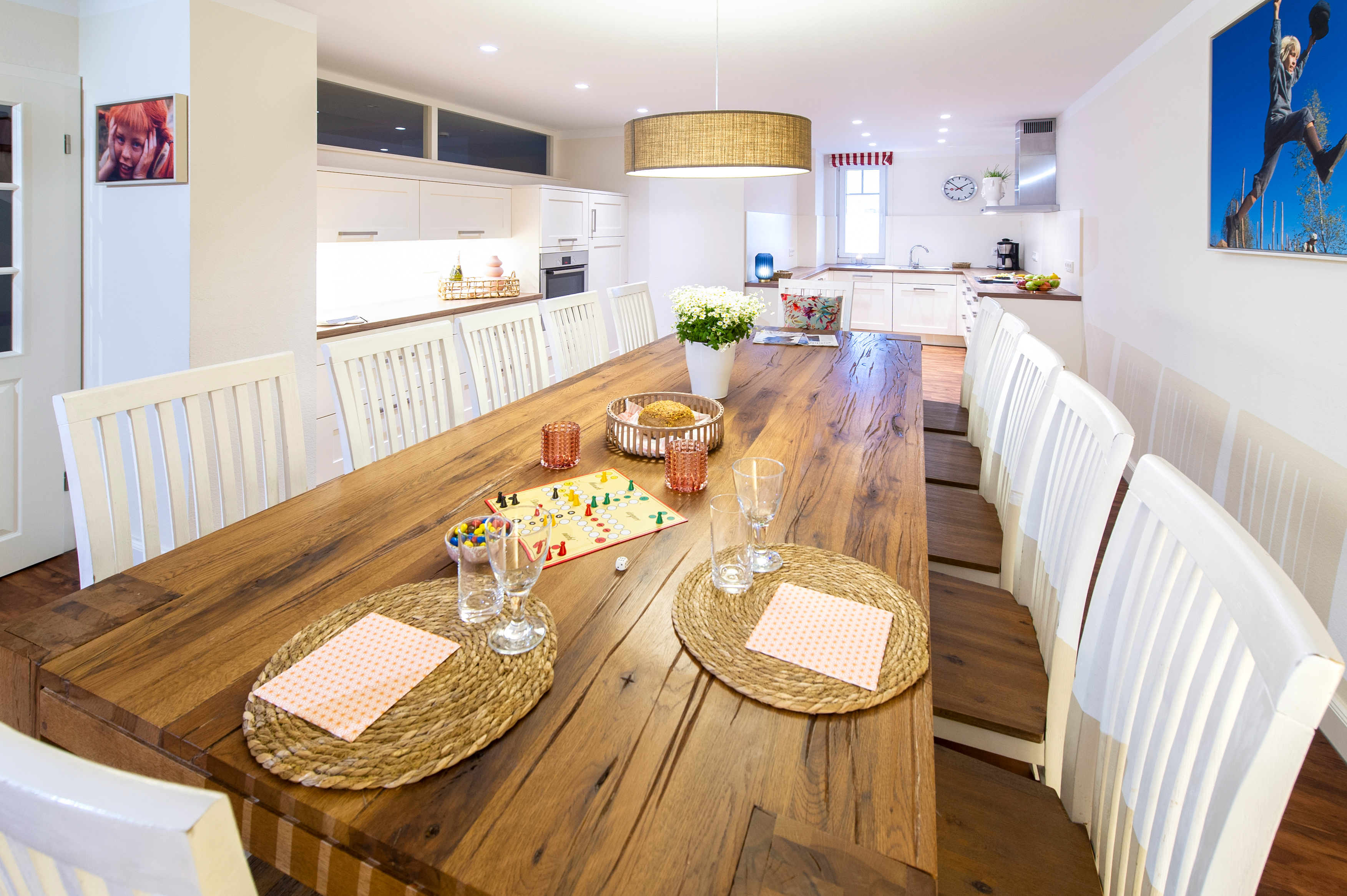 Jede Wohnung wurde individuell geplant, urlaubsgerecht eingerichtet und bietet ausreichend Raum für Großfamilien oder zwei Familien. Es finden insgesamt bis zu 12 Personen Platz.